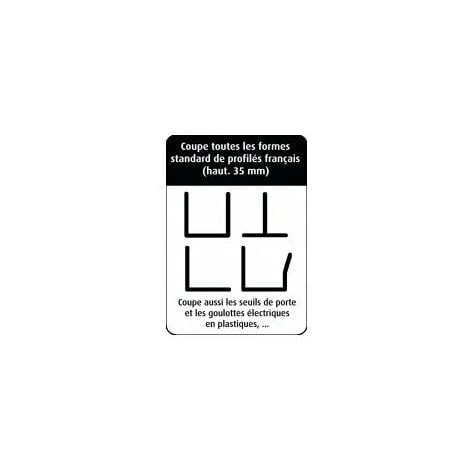 Coupe toutes les formes standard de profilés (hauteur max 35 mm). Coupe aussi les seuils de porte et les goulottes électriques en plastique. Idéale pour les coupes en série. Ensemble de la mâchoire en acier traité haute dureté. Lame supérieure et inférieures réaffûtables. Autonome car sans branchement électrique. Pas d’étincelle, donc pas de permis au feu pour le travail dans des locaux sensibles.