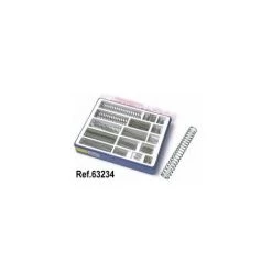 Caractéristiques Assortiment de 130 ressorts à compressionAssortiment de 130 ressorts. Composition : – 20 ressorts Ø 3,5 x h.30 mm – fil 4/10e – 10 ressorts Ø 5 x h.30 mm – fil 4/10e – 10 ressorts Ø 8 x h.80 mm – fil 8/10e – 10 ressorts Ø 6 x h.60 mm – fil 8/10e – 10 ressorts Ø 10 x h.70 mm – fil 10/10e – 5 ressorts Ø 14 x h.100 mm – fil 12/10e – 5 ressorts Ø 15 x h.100 mm – fil 15/10e – 3 ressorts Ø 18 x h.27 mm – fil 17/10e – 3 ressorts Ø 16 x h.100 mm – fil 18/10e – 2 ressorts Ø 20 x h.125 mm – fil 20/10e – 2 ressorts Ø 20 x h.000 mm – fil 22/10e – 10 ressorts Ø 3 x h.20 mm – fil 45/100e – 10 ressorts Ø 5,5 x h.30,5 mm – fil 55/100e – 10 ressorts Ø 5 x h.40 mm – fil 65/100e – 10 ressorts coniques Ø 7 à 20 mm x h.10 mm – fil 10/10e – 10 ressorts coniques Ø 5 à 10 mm x h.10 mm – fil 45/100eAssortiment de 130 ressorts. Composition : – 20 ressorts Ø 3,5 x h.30 mm – fil 4/10e – 10 ressorts Ø 5 x h.30 mm – fil 4/10e – 10 ressorts Ø 8 x h.80 mm – fil 8/10e – 10 ressorts Ø 6 x h.60 mm – fil 8/10e – 10 ressorts Ø 10 x h.70 mm – fil 10/10e – 5 ressorts Ø 14 x h.100 mm – fil 12/10e – 5 ressorts Ø 15 x h.100 mm – fil 15/10e – 3 ressorts Ø 18 x h.27 mm – fil 17/10e – 3 ressorts Ø 16 x h.100 mm – fil 18/10e – 2 ressorts Ø 20 x h.125 mm – fil 20/10e – 2 ressorts Ø 20 x h.000 mm – fil 22/10e – 10 ressorts Ø 3 x h.20 mm – fil 45/100e – 10 ressorts Ø 5,5 x h.30,5 mm – fil 55/100e – 10 ressorts Ø 5 x h.40 mm – fil 65/100e – 10 ressorts coniques Ø 7 à 20 mm x h.10 mm – fil 10/10e – 10 ressorts coniques Ø 5 à 10 mm x h.10 mm – fil 45/100eAssortiment de 130 ressorts. Composition : – 20 ressorts Ø 3,5 x h.30 mm – fil 4/10e – 10 ressorts Ø 5 x h.30 mm – fil 4/10e – 10 ressorts Ø 8 x h.80 mm – fil 8/10e – 10 ressorts Ø 6 x h.60 mm – fil 8/10e – 10 ressorts Ø 10 x h.70 mm – fil 10/10e – 5 ressorts Ø 14 x h.100 mm – fil 12/10e – 5 ressorts Ø 15 x h.100 mm – fil 15/10e – 3 ressorts Ø 18 x h.27 mm – fil 17/10e – 3 ressorts Ø 16 x h.100 mm – fil 18/10e – 2 ressorts Ø 20 x h.125 mm – fil 20/10e – 2 ressorts Ø 20 x h.000 mm – fil 22/10e – 10 ressorts Ø 3 x h.20 mm – fil 45/100e – 10 ressorts Ø 5,5 x h.30,5 mm – fil 55/100e – 10 ressorts Ø 5 x h.40 mm – fil 65/100e – 10 ressorts coniques Ø 7 à 20 mm x h.10 mm – fil 10/10e – 10 ressorts coniques Ø 5 à 10 mm x h.10 mm – fil 45/100e