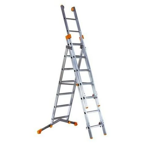 Echelle Aluminium Transformable Prima, echelle 3 plans : 8 + 9 + 9 echelons
