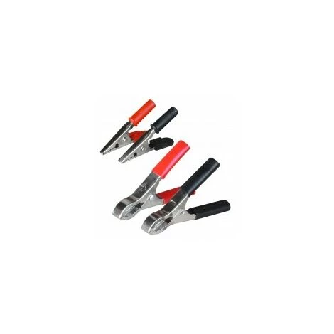 Désignation Jeu de 2 pinces pour cosses de batterie (1 rouge – 1 noire)longueur 80 mmRessort de fermeture. Avec une poignée creuse pour sertissage sur câble électrique. Ressort de fermeture. Avec une poignée creuse pour sertissage sur câble électrique. Ressort de fermeture. Avec une poignée creuse pour sertissage sur câble électrique.