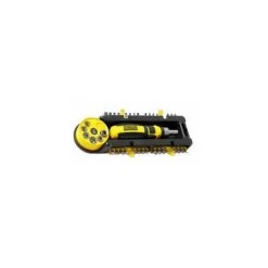 Tournevis à cliquet 72 dents réversible et verrouillable. Manche ergonomique confortable avec inserts en caoutchouc antidérapant. Livré dans un support de rangement compact et pratique avec un assortiment de douilles et embouts.Composition : Plats 3 / 4(x2) / 5(x2) / 6 / Ph0 / Ph1(x2) / Ph2(x2)) / Ph3 / Pz0 / PZ1(x2) / Pz2(x2) / Pz3 / Hex 3 / 4 / 5 / 6 / Torx T10 / T15 / T20 / T25 / T30 / Carrés S0 / S1 / S2 / S3 / embout porte-douilles 1/4′ / Douilles 5 / 6 / 7 / 8 / 9 / 10 mm.