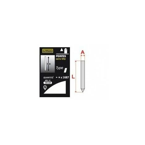 Pointes sans tête.Dimensions :A = Ø 1,00 mm